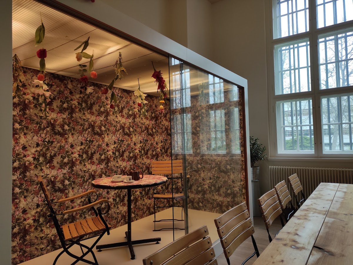 Dieses kleine Kaffee gehört praktisch noch zum Museum Europäischer Kulturen: Es hat zwar einen separaten Eingang ist aber auch direkt vom Museum aus erreichbar. Hier findet man eine kleine gut sortierte Vitrine mit Kuchen und ein klassisches Kaffeeangebot. Neben dem Außenbereich gibt es zwei Innenräume, einer davon eher schlicht mit einer Art Indoorspielplatz für Kinder.